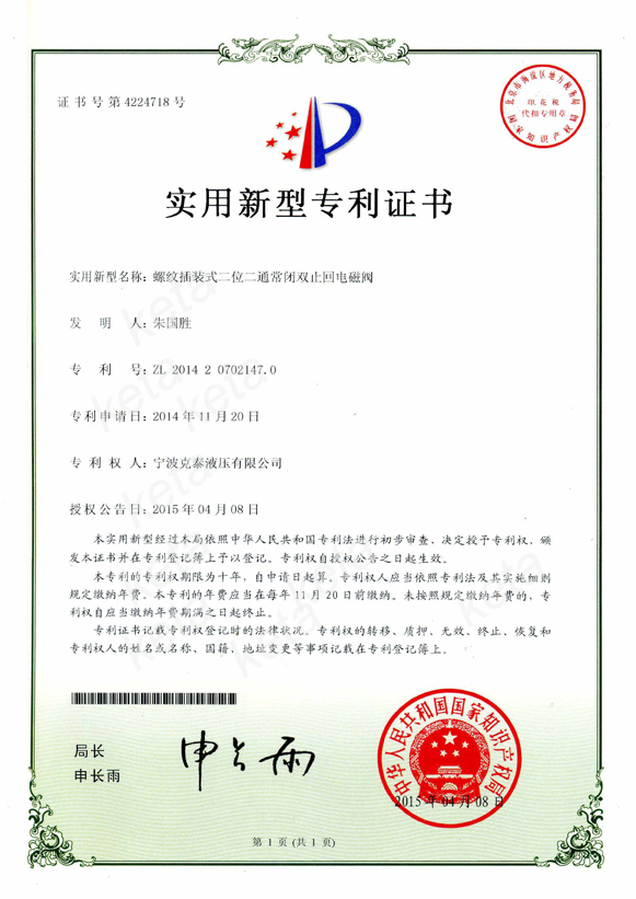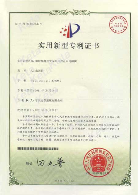 先导常闭双止回电磁阀实用新型专利