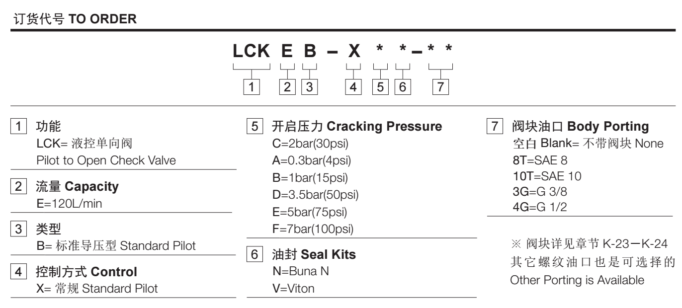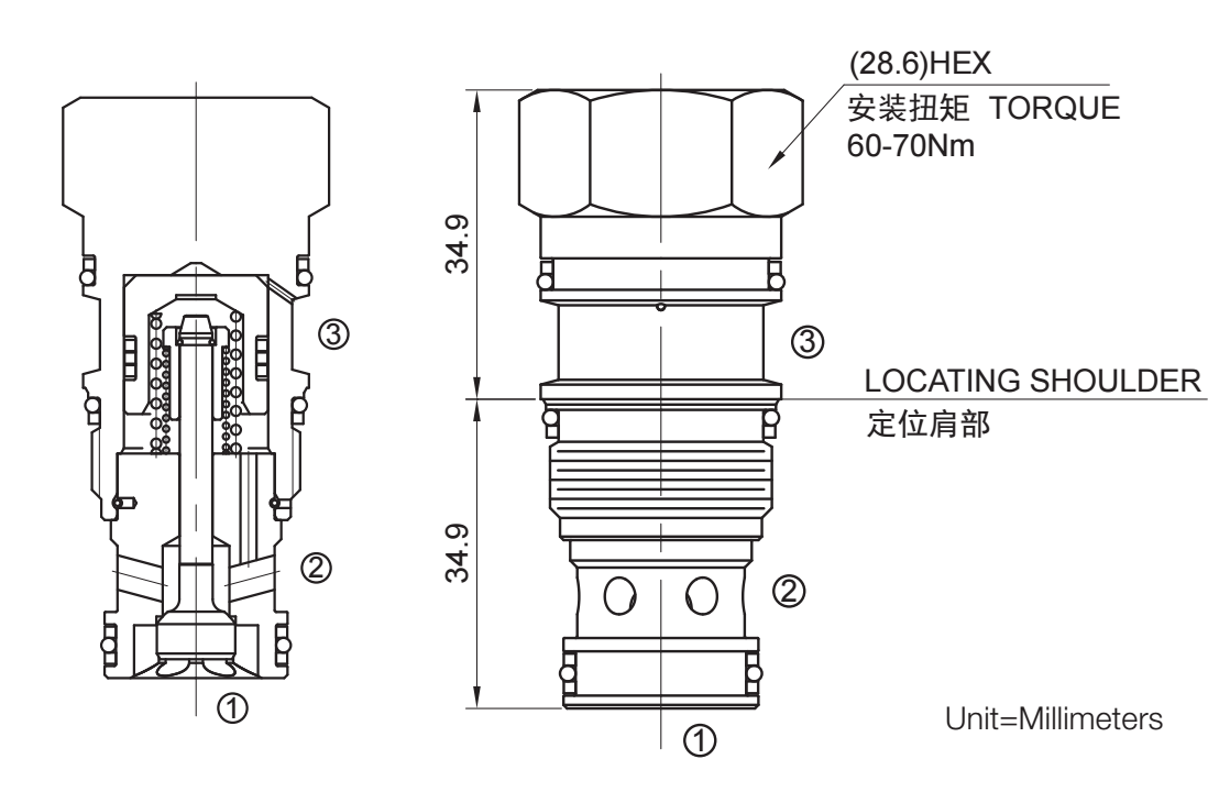 此阀具有非密封导压。当在②口的压力超过开启压力,②到①开启:在反方向,①到②关闭;